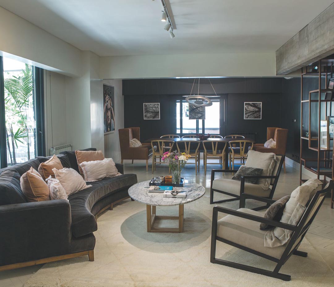 ●La remodelación incluyó la demolición de cielorrasos para llegar a las alturas de losa, la limpieza de columnas y vigas para apreciar el hormigón visto, el cambio de aberturas para lograr mayores alturas, la incorporación de elementos en hierro negro (las puertas que separan lo público de lo privado) y la unificación de pisos. Todo esto colaboró para llegar a una planta mucho más funcional e integrada, acorde a las necesidades de la familia que la habita.