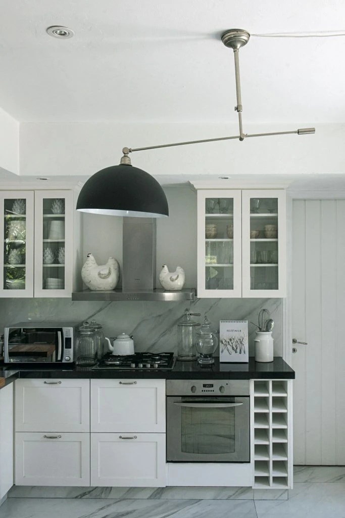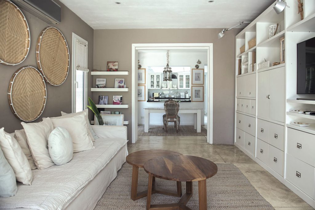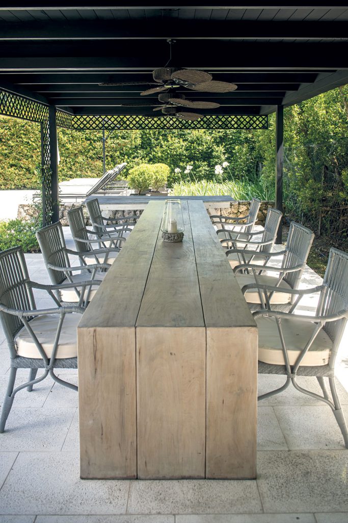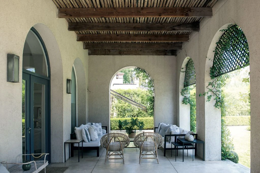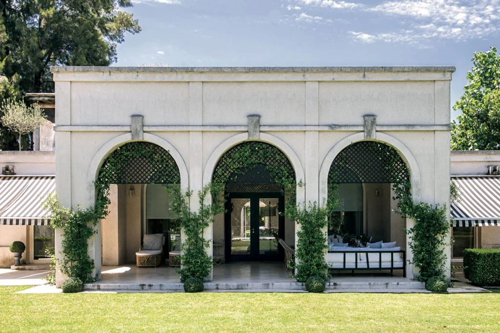 Más allá de sus detalles constructivos, la arquitectura de la casa es muy sencilla: una sola planta lineal con el patio interno al frente y el gran jardín posterior. Hacia él mira la maravillosa galería, con su frente de estilo toscano en el que dan la nota las tres grandes arcos de medio punto de casi 5 metros de alto. Todas llevan como remate unos treillages de hierro negro por donde trepan unos jazmines de leche: acertada decisión para ganar sombra en una galería que recibe sol pleno. “La casa me fue enseñando algunas cosas, porque las casas se aprenden a medida que se las vive. Por eso yo siempre digo que hacer la decoración de a poquito ayuda un montón”, dice Dominique.