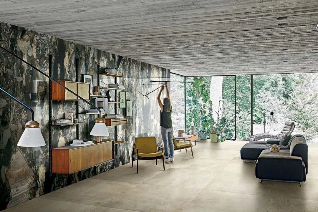 Estilos variados y texturas que copian a la perfección la impronta de la piedra se destacan en los porcellanatos de última generación.