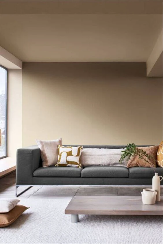 Un ambiente en Brave Ground se decora idealmente con accesorios y electrodomésticos neutros que completan la calidez encantadora de este color, ideal para livings y dormitorios.