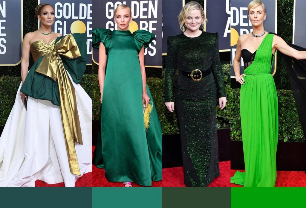 Para los Golden Globe 2020, el color favorito fue el verde. Jennifer López eligió un vestido de la colección de Valentino Couture, donde grandes moños en color verde y dorado decoraban su espectacular vestido.