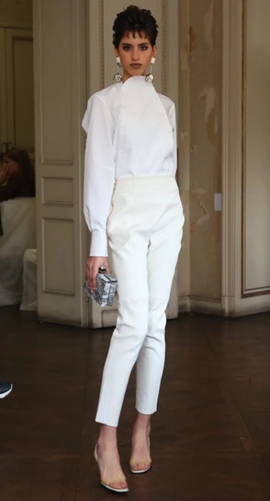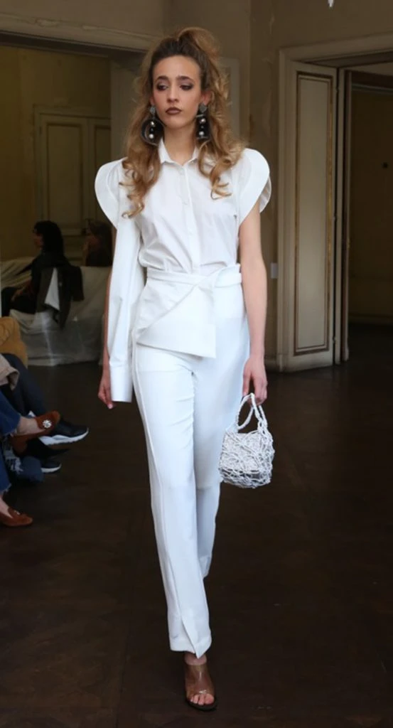 Su desfile en el Palacio Devoto fue un flashback a la estética noventera de la tevé y revistas de la época. Cueros, latex y vinílicos construyen todo una puesta en escena. Los colores: blanco, beige, rosa, negro, rojo y celeste. Diseño y artificio. Fotos: Maxi Didari.