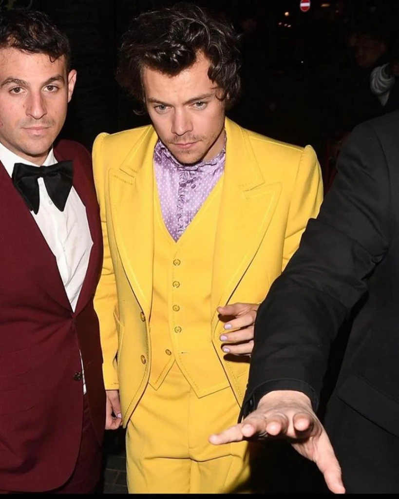 Además de su comentada con Lizzo, Harry Styles también dio que hablar por el segundo outfit que llevó: un traje amarillo de Marc Jacobs, de la colección primavera-verano 2020 del diseñador norteamericano.