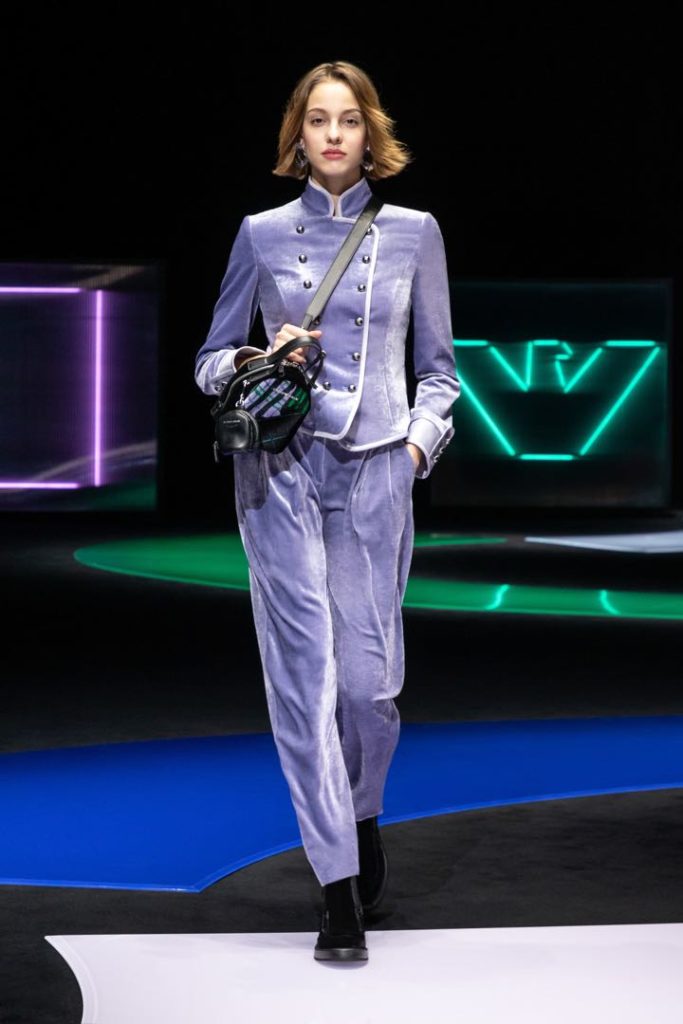 El estilo comfy es destronado por los trajes. No es sorprendente que sea en Milán donde vuelve con fuerza el traje. Los conjuntos de chaqueta y pantalón y chaqueta y falda hicieron su aparición en los desfiles de Fendi, y Armani.