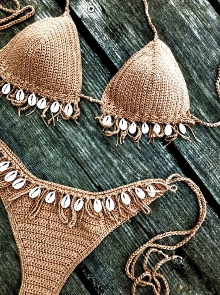 Los buzios se llevan también en bikinis tejidas en crochet.