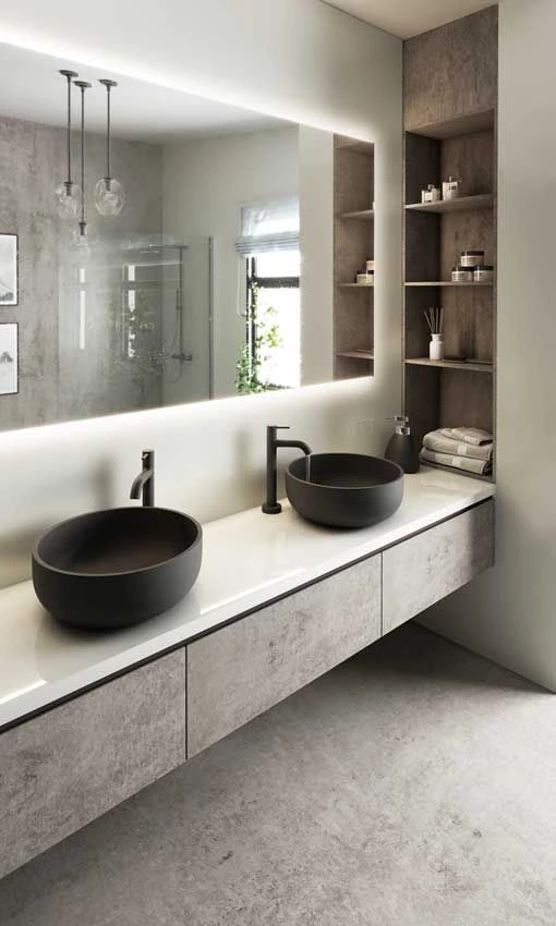 9. Si el baño es compartido, nada mejor que colocar dos bachas para mejorar la comodidad y la funcionalidad.