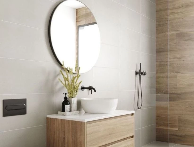 6. Suelos y paredes varían en función de los gustos de cada persona y también del tamaño del cuarto de baño. Sin embargo, más allá de seleccionar azulejos de gran tamaño o aprovechar las paredes lisas para poner un elegante papel pintado, una buena forma de modernizar el cuarto de baño es seleccionar un alicatado diferente en forma o color para la zona de ducha, creando así espacios diferenciados que se dejan ver a través de las mamparas transparentes.