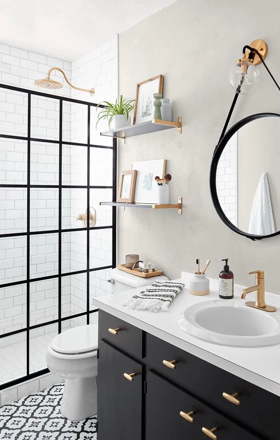 7. Así se trate de un baño chico o grande, los muebles elevados y suspendidos son una excelente alternativa. No solo hacen que el espacio parezca más amplio, sino que también facilitan la limpieza. Este punto también aplica para sanitarios.