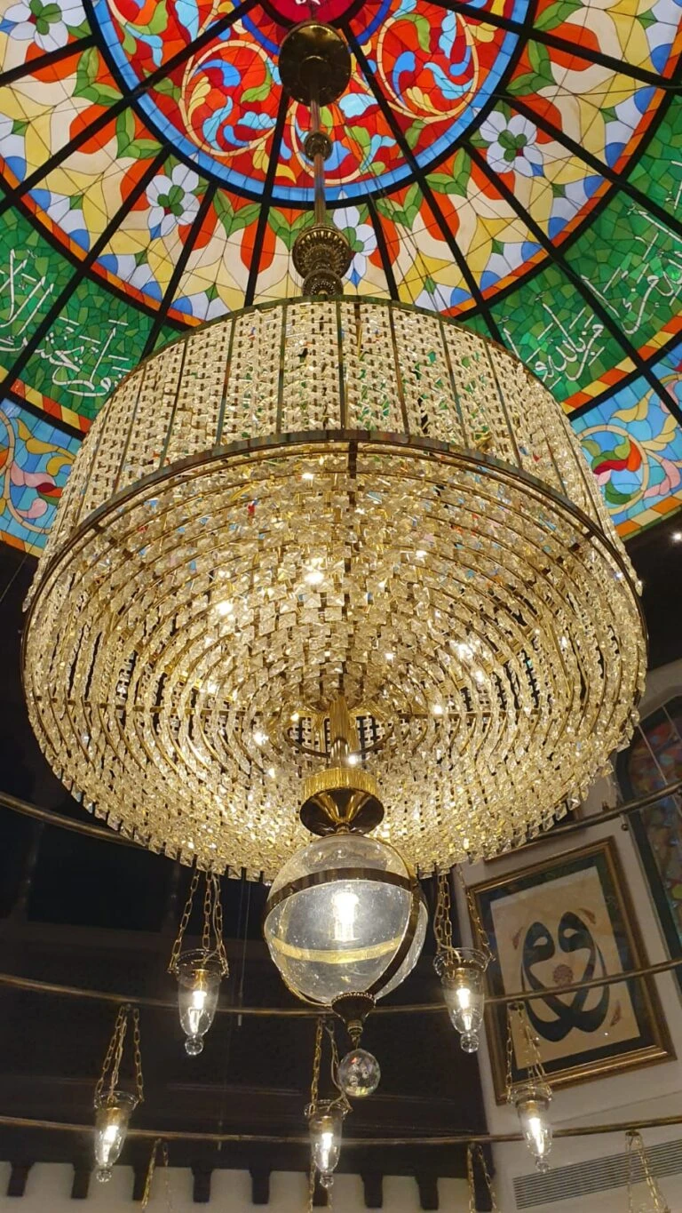 En el salón principal hay una cúpula de 81 paneles y un vitreaux de China de 5.450 fragmentos multicolor