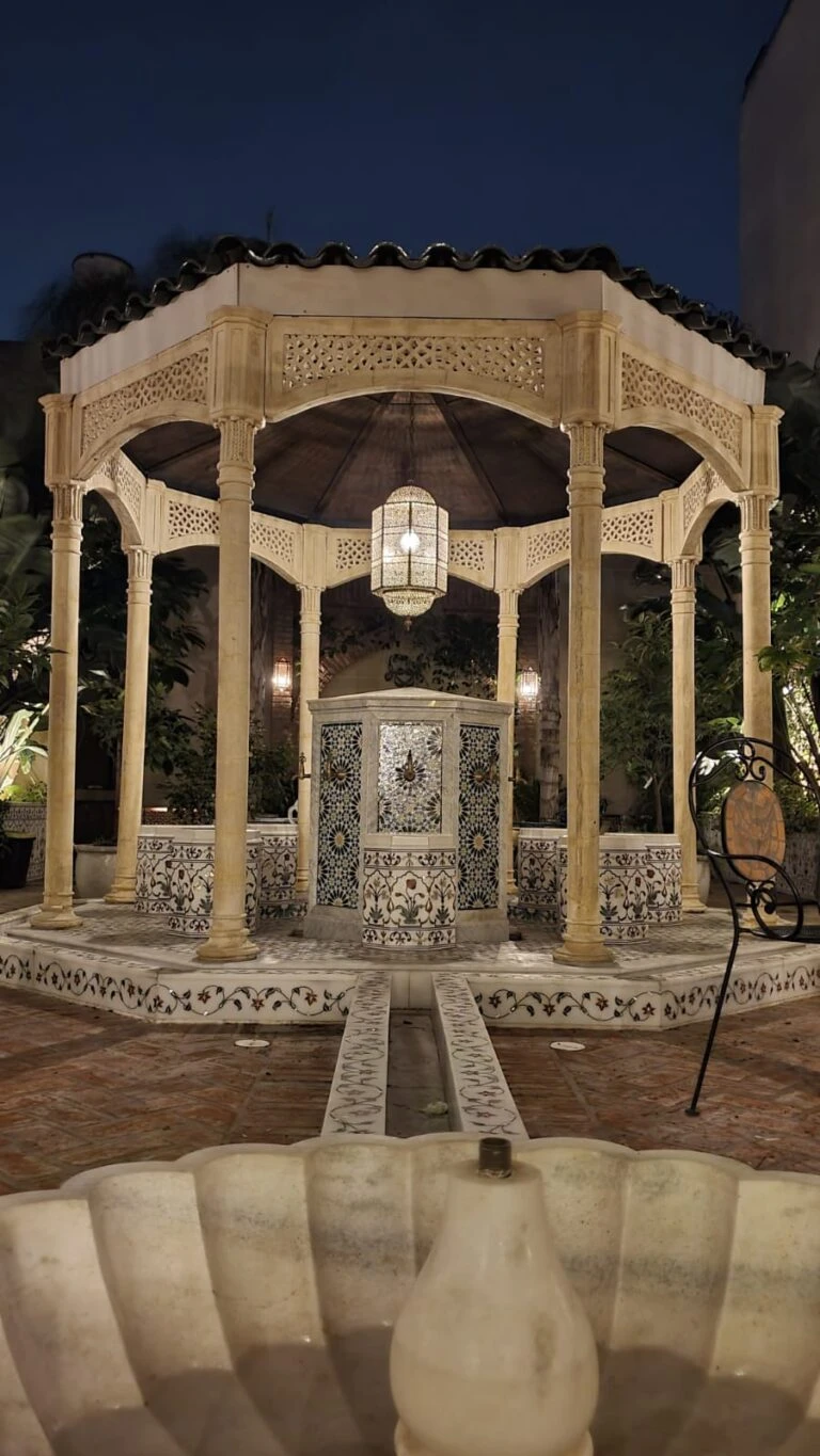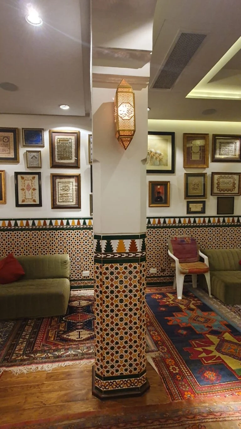 En la fachada, hay más de 11 mil mayólicas provenientes de Granada. Luego, los detalles, las caligrafías y las telas que se observan en las paredes están cargados de simbolismo.