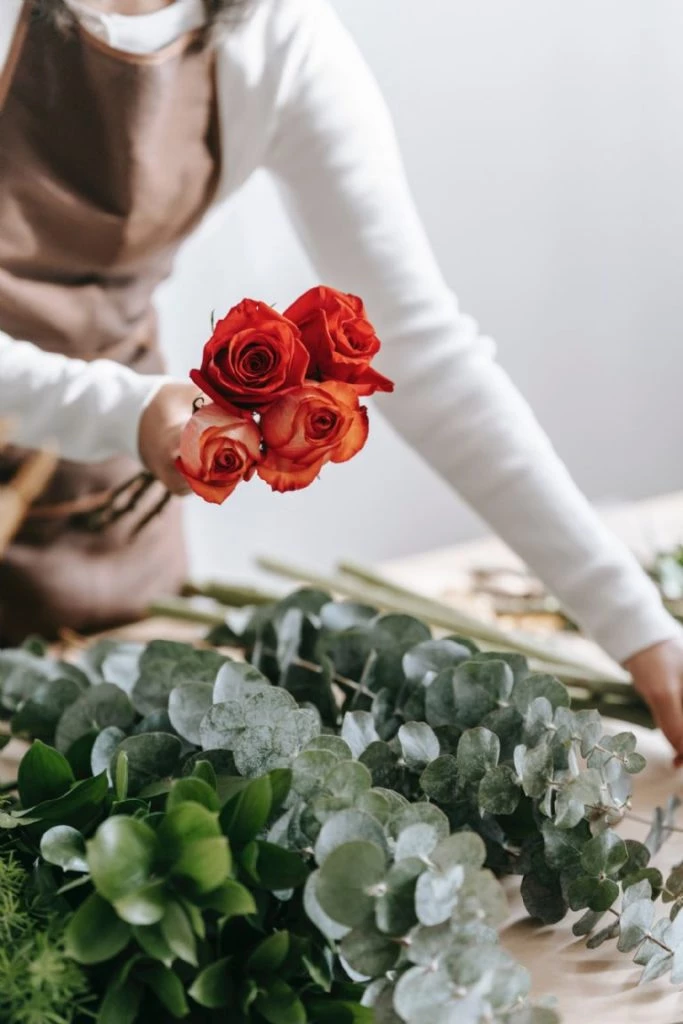 Rojo y verde, los colores típico de la Navidad: las rosas rojas son de las flores con más personalidad y van a quedar de ensueño con tus ramas de eucalipto.