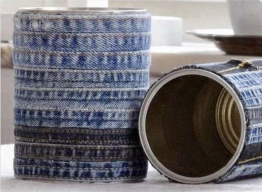 Podés forrar una lata con tiras de jeans y guardar ahí todos tus elementos. ¡Es súper fácil y rápido!