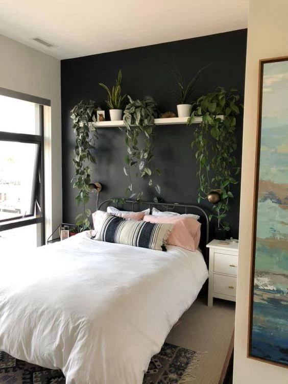 Otra buena opción es sumar plantas en tu habitación para generar un ambiente más cálido. Podés poner una planta colgante sobre una repisa o un estante.