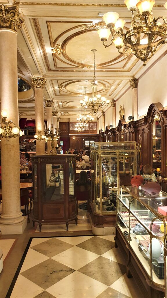 Está ubicada en Suipacha 384, a metros de Avenida Corrientes. Sentarse en una de sus mesas es un revival de la belle époque.