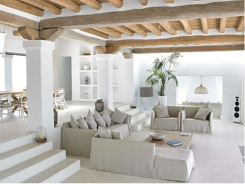 1. La predominancia del blanco es clave ya que aporta uno de los ítems fundamentales que este estilo promueve: ambientes luminosos. Se puede combinar con otros colores asociados al mar como azul, turquesa, verde y también colores tierra.