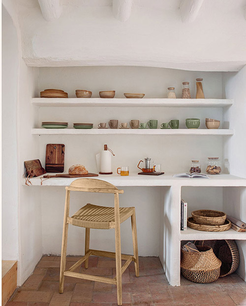 La madera -la gran protagonista- suele ser clara y se lleva en muebles su estado más puro, aceptando sus líneas imperfectas y haciéndolas parte de una decoración sencilla.