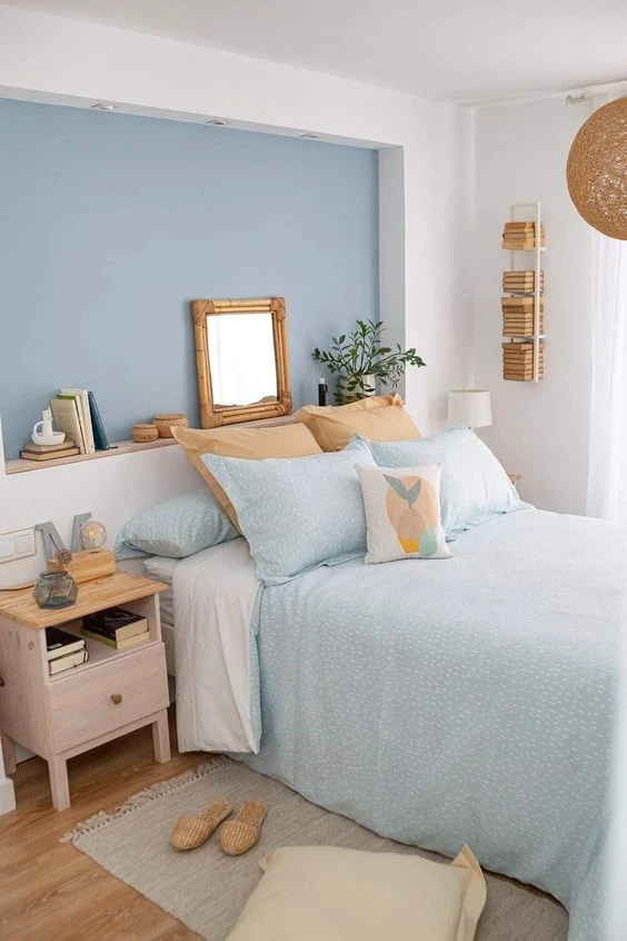 El azul pastel se posiciona como uno de los colores favoritos para los dormitorios de 2025. Este tono suave de azul es perfecto para quienes buscan crear un refugio relajante, ya que tiene un efecto calmante sobre la mente.
