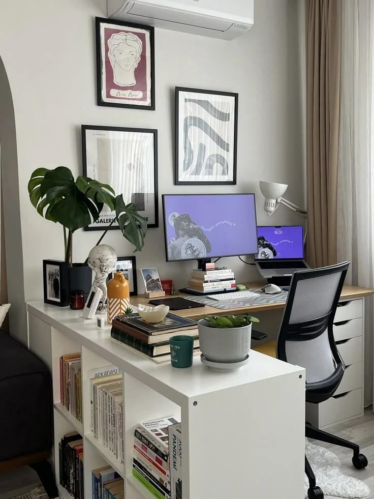 Sumale una silla ergonómica para estar cómoda y por qué no una repisa arriba para organizar todo. ¿Lo mejor? No ocupa lugar y queda súper prolijo.