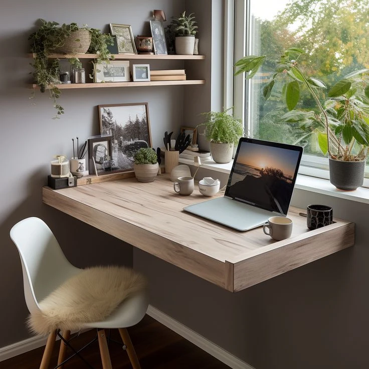 Si el espacio es un problema, la solución es simple: una tabla de madera anclada a la pared y listo, tenés tu escritorio.