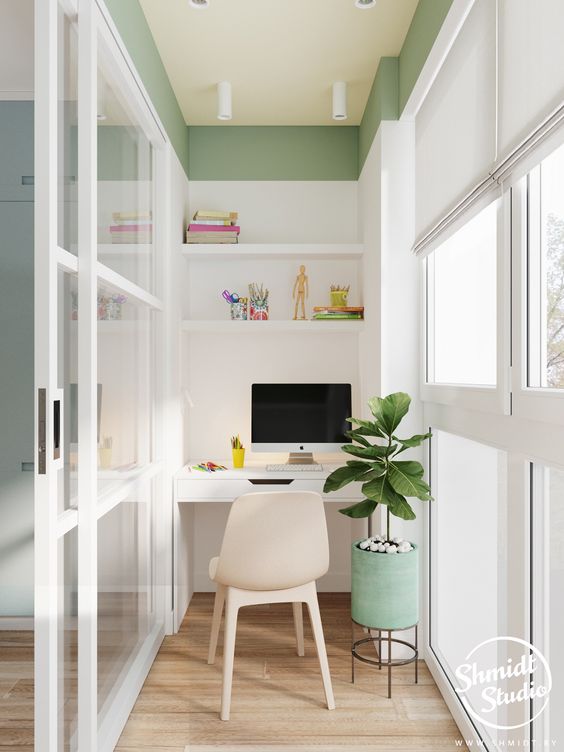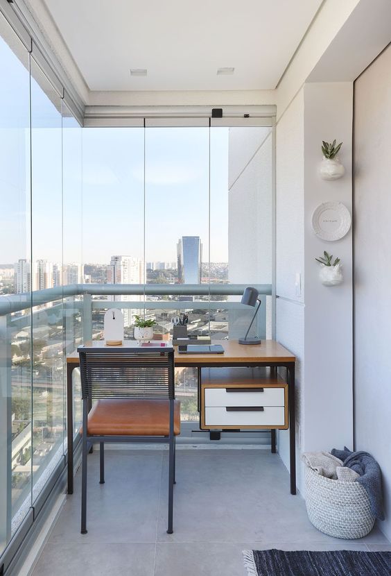 Esta alternativa es la más elegida y tuvo su pico de popularidad en 2020 y 2021, debido al confinamiento estricto y el auge del home office. Este contexto trajo consigo un montón de ideas y recursos creativos para diseñar una zona de trabajo o estudio en casa y muchos aprovecharon su balcón cerrado con este fin y lo transformaron en un espacio súper funcional y lleno de estilo para trabajar o estudiar en total confort.