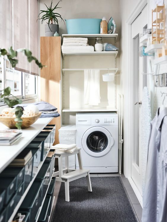 Aprovechar los balcones cerrados para armar un lavadero es una opción muy popular y rendidora. Podés sumar estantes flotantes con cestos para almacenar los elementos, dispensers de diseño, etc. La clave está en usar la creatividad y hacer de este espacio un lugar práctico y lleno de estilo.