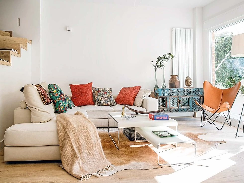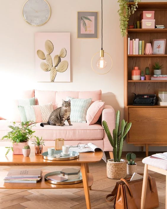 Puede ser pintando alguna pared predominante o a través de objetos decorativos como textiles, almohadones, floreros, cuadros, etc. En cualquiera de los casos conviene buscar un equilibrio y no abusar llenando el espacio con estos colores ya que podría saturarlo visualmente.