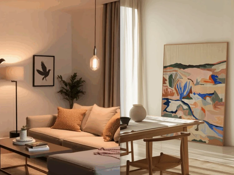 2. Crear un punto focal claro. Muchos ambientes pierden fuerza porque no hay una jerarquía visual definida. Cuando un cuadro llamativo, una lámpara protagonista, un espejo grande y varios objetos decorativos compiten al mismo tiempo, la mirada no sabe dónde detenerse. Eso genera una sensación de desorden.