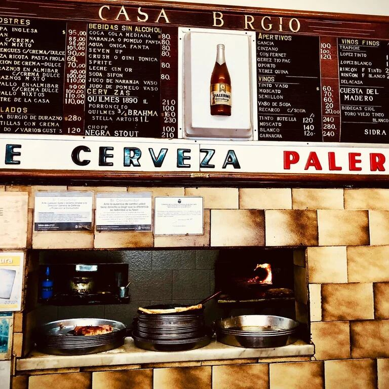 También hay una antigua heladera mostrador que exhibe los postres de la casa y la clásica barra para comer una pizza al molde de parado, como Dios manda. Queda en Cabildo 2477.