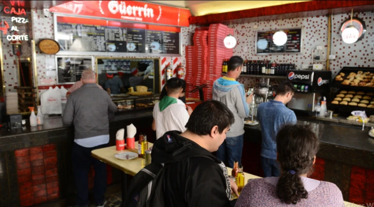 Palabras mayores es hablar de Guerrín, otra pizzería icónica de la “calle que nunca duerme” y que también fue fundada en 1932 (antes de que existiera el Obelisco) y que cuenta con 70 variedades de pizzas.