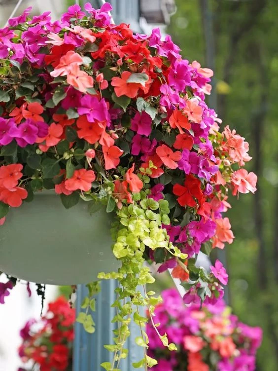 Para darle color al balcón, la alegría del hogar es perfecta y crece sin problemas en exteriores sin sol directo. En los días más calurosos se recomienda regalarla con frecuencia pero siempre evitando los encharcamientos. Queda divina en una maceta colgante sobre una pared, baranda o incluso techo.