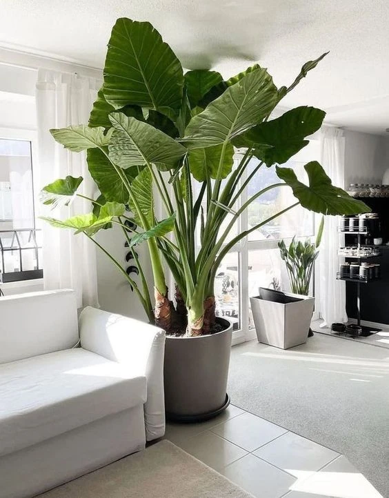 La alocasia u oreja de elefante es una de las plantas favoritas para darle un shock de efecto tropical al living. Es súper fácil de cuidar y también está muy de moda.