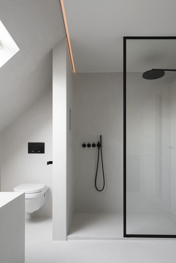 1. La predominancia del color blanco es clave y mientras más, mejor. Presente en sanitarios, paredes, techos e incluso pisos, aporta un plus de luminosidad y amplitud siendo ideal para aquellos baños de pocos metros. Y se combina con detalles en color negro, gris o madera.