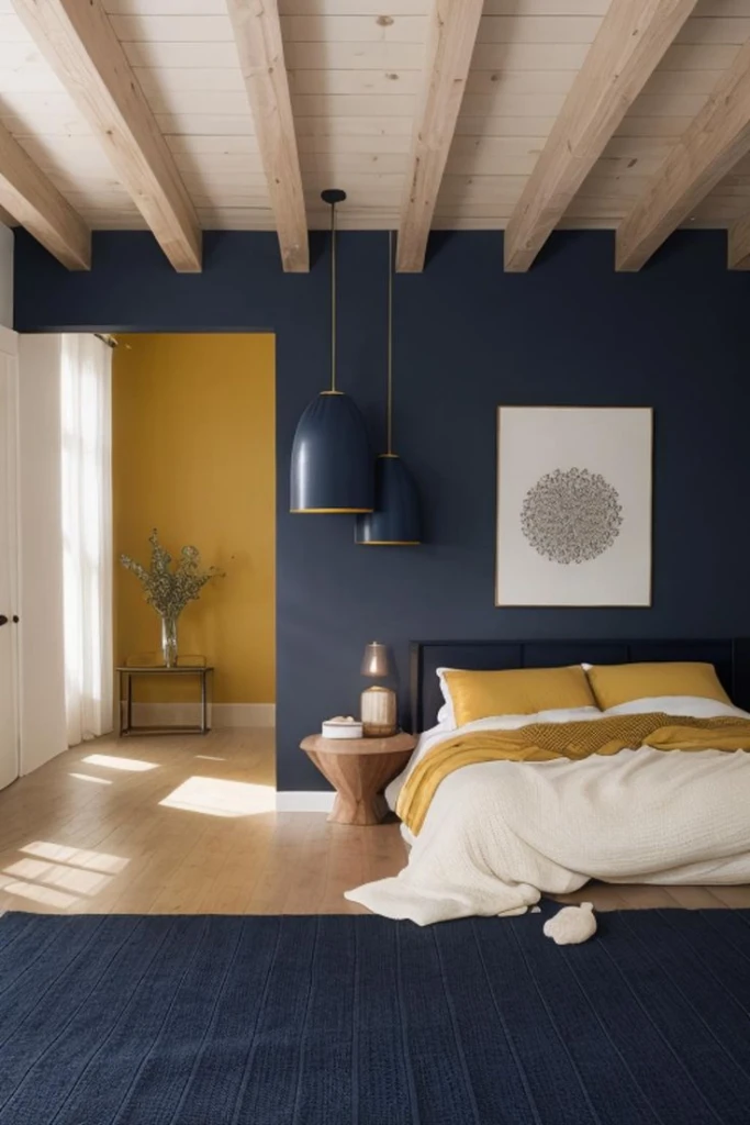 Si estás buscando crear un ambiente elegante y moderno, el azul marino será una elección acertada. Este tono profundo añade carácter y sofisticación. Se lleva en dormitorios y livings, preferentemente en una sola pared predominante.