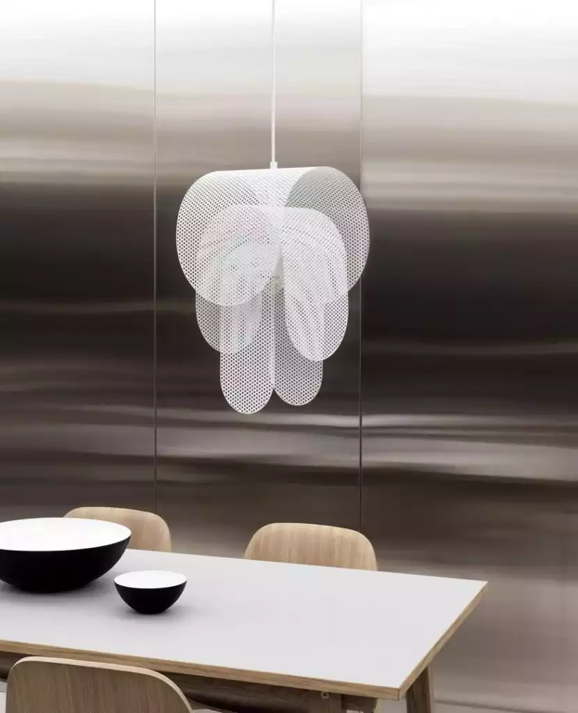 Esta lámpara se llama Superpose (significa superpuesta) y fue diseñada por Frederik Kurzweg (@frederik_kurzweg_studio) para @normanncph. Este diseñador se formó como ebanista y recibió varios premios de diseño. Motivado por este éxito inicial, comenzó a estudiar diseño industrial en la Universidad de Ciencias Aplicadas de Magdeburgo, donde amplió su conocimiento profesional sobre las diferentes propiedades de los materiales y los procesos de diseño técnico.