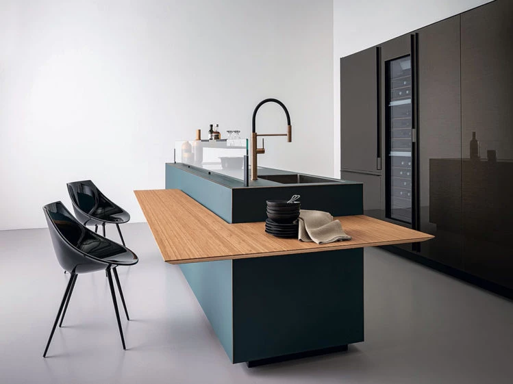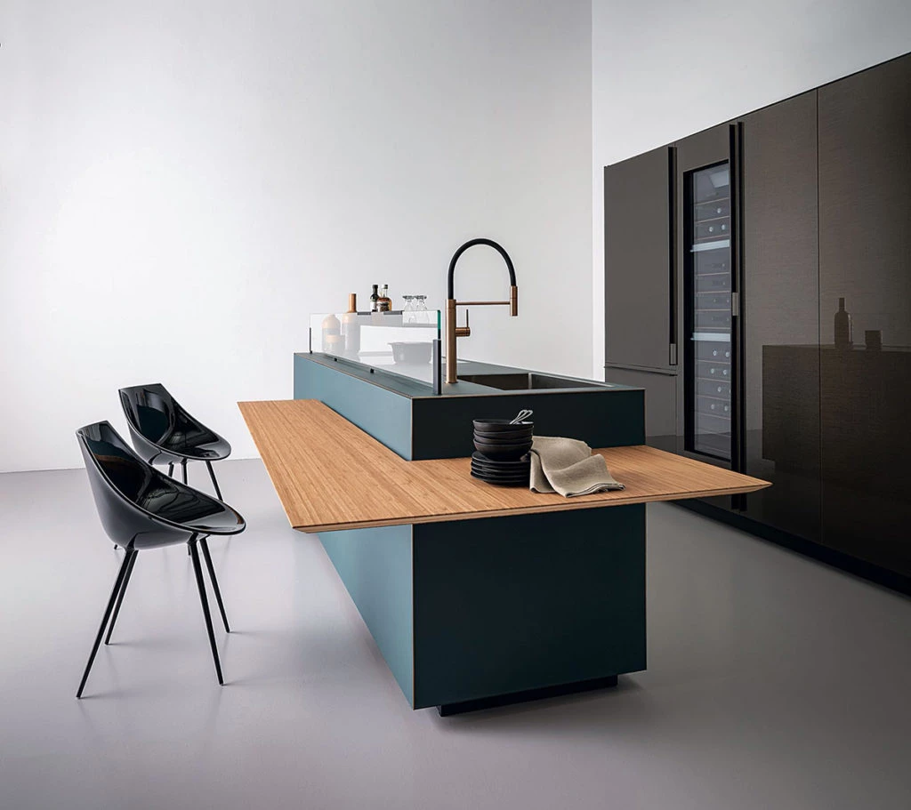 5. Amoblamientos flexibles. La áreas de trabajo donde están las bachas y los anafes desaparecen en cuestión de segundos detrás de puertas escamoteables, dotadas de un herraje que las torna plegables y que fue furor en todas las marcas de equipamientos para cocinas. Flexibilidad y fluidez a la orden del día.