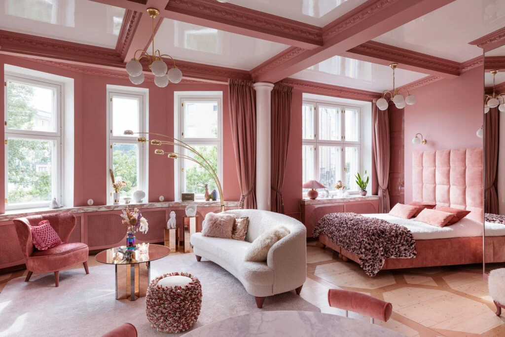 En este enfoque de la feminidad, se combinan texturas suaves y colores pasteles con telas mullidas para crear un ambiente teatral. El rosa en su versión pastel o empolvada gana terreno.