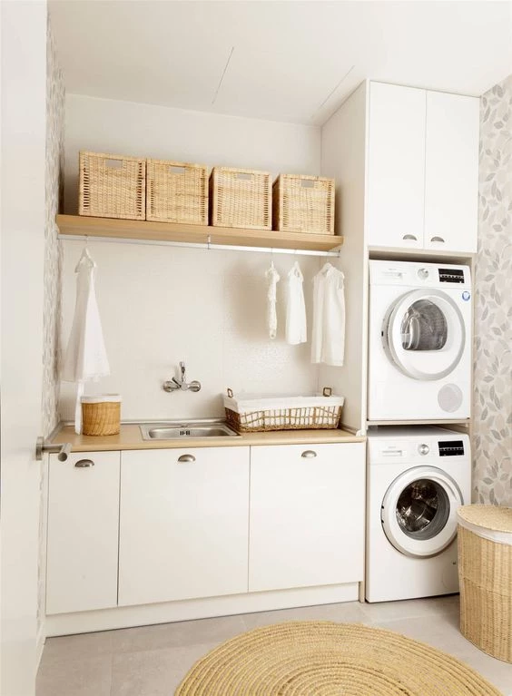 Un ejemplo: muchas personas remojan primero la ropa en la bacha y luego la colocan en el lavarropas (todo continuo para no mojar el piso). En este caso, se va necesitar colocar una máquina lavadora que esté pegada a la pileta. Esta opción además es súper funcional, ya que se aprovecha un mismo desagüe.
