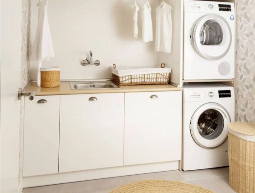 Un ejemplo: muchas personas remojan primero la ropa en la bacha y luego la colocan en el lavarropas (todo continuo para no mojar el piso). En este caso, se va necesitar colocar una máquina lavadora que esté pegada a la pileta. Esta opción además es súper funcional, ya que se aprovecha un mismo desagüe.