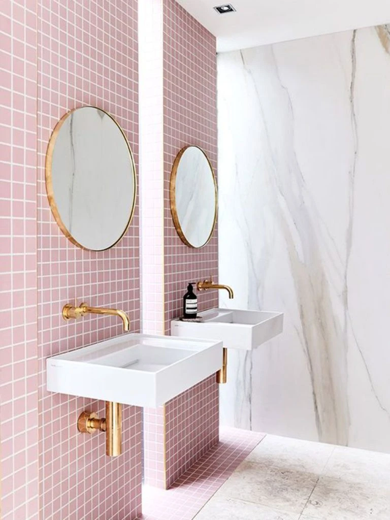 5. El baño más romántico, en rosa pastel + oro