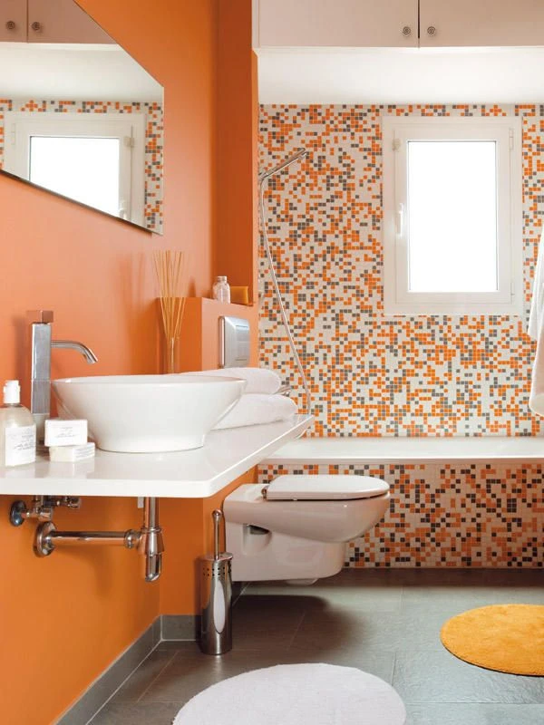1. Un baño en naranja + gris + blanco