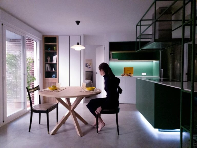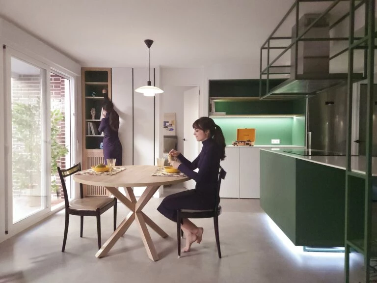 El nuevo diseño de la casa está inspirado en la atmósfera de películas de Almodóvar, como Átame! o Dolor y Gloria, por su uso de colores ácidos, primarios y saturados, que aportan a la vivienda significados procedentes del imaginario colectivo.