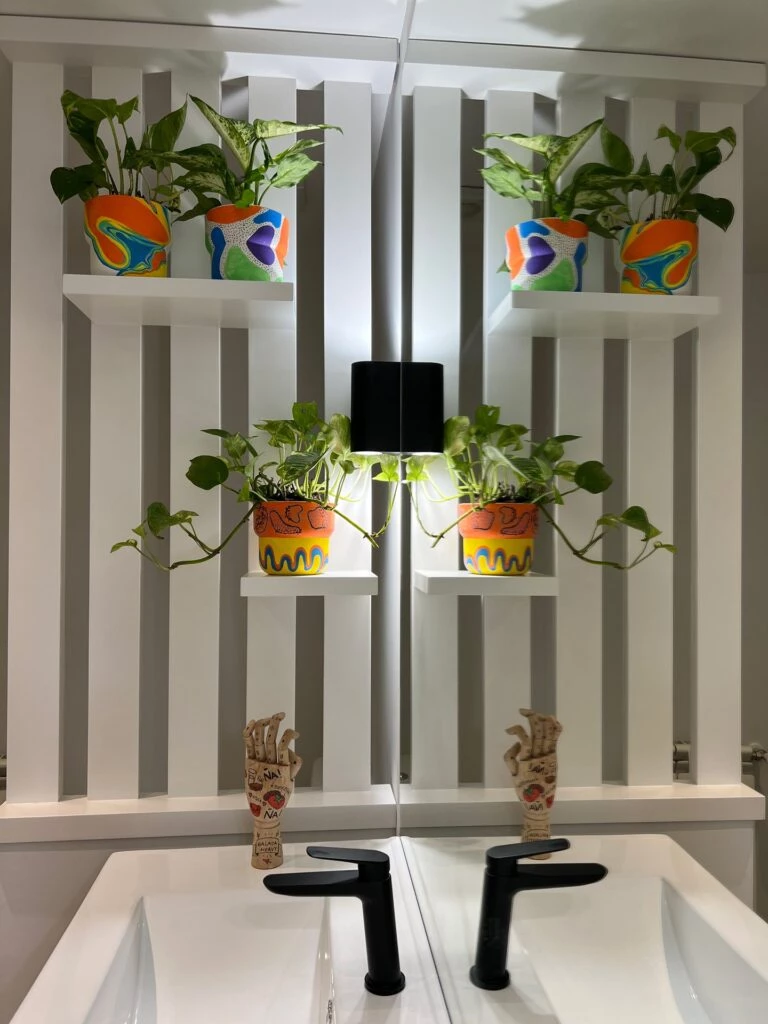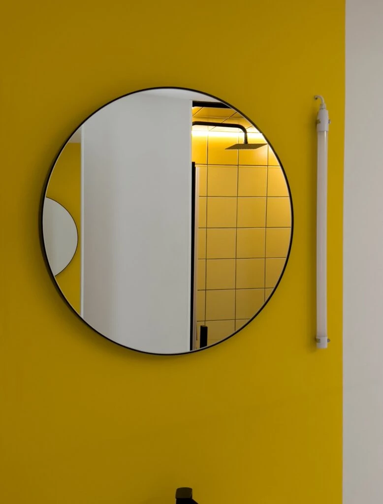 El amarillo elegido en los baños -como en otros proyectos del estudio- lleva al despertar, a la energía de la primera hora de la mañana. Se trata de un color brillante que simboliza alegría, algarabía.