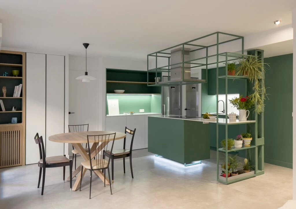 'Casa J29' nace con la premisa de actualizar una típica vivienda española de los años 70 con estructura muy compartimentada, en un espacio fluido donde el alma del proyecto sea una cocina integrada con una isla industrial.
