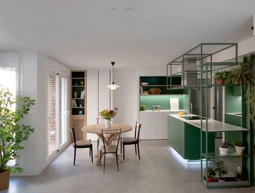 'Casa J29' nace con la premisa de actualizar una típica vivienda española de los años 70 con estructura muy compartimentada, en un espacio fluido donde el alma del proyecto sea una cocina integrada con una isla industrial.