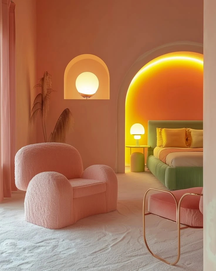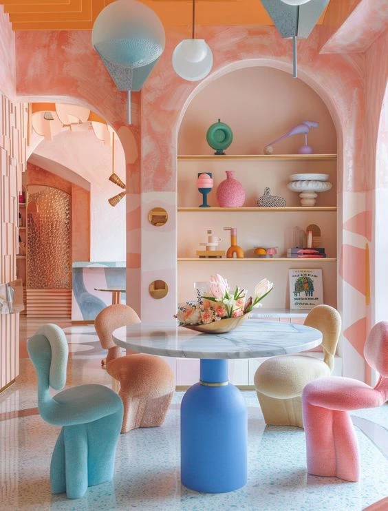Esta impronta tendencia 2025 lleva el arte, la fantasía y los elementos inesperados a un nuevo nivel, transformando los espacios en escenarios oníricos con formas fluidas, colores vibrantes y una sensación de irrealidad que rompe con lo cotidiano.