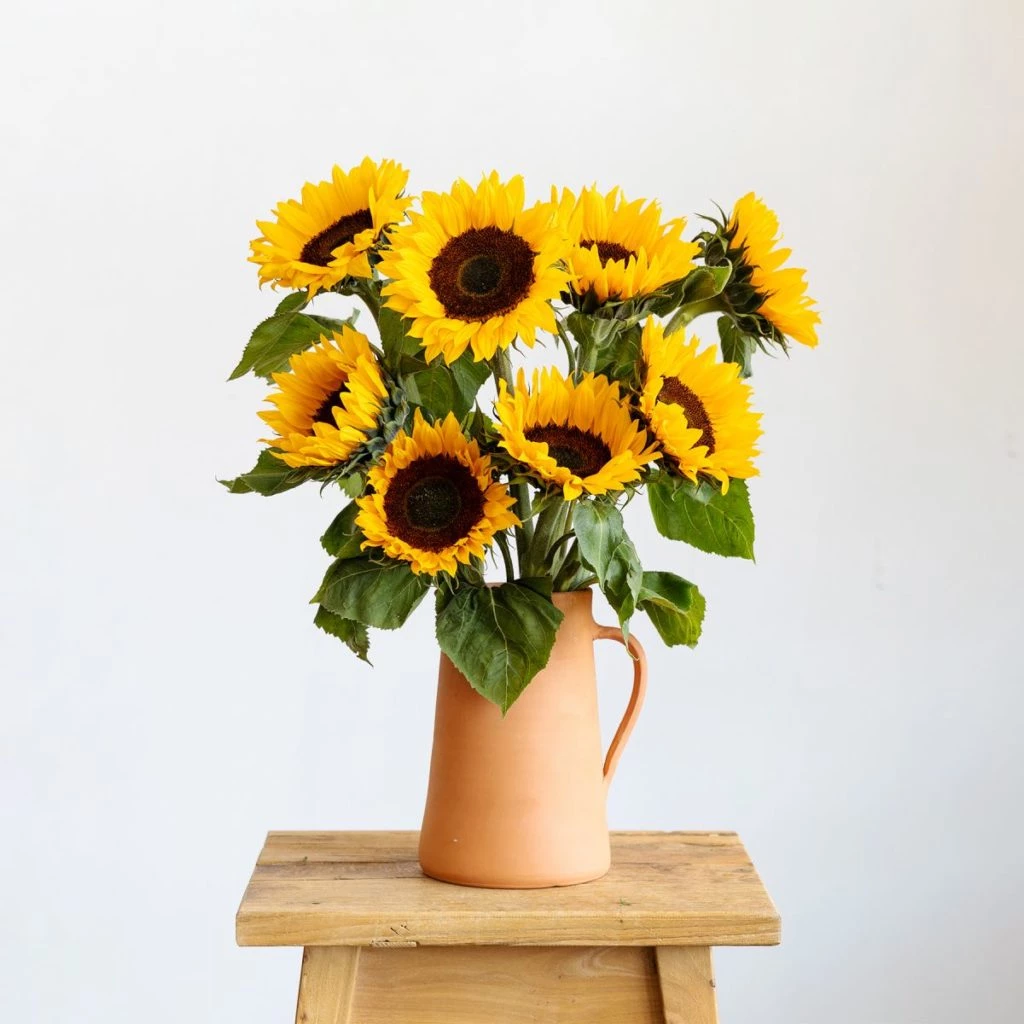 - Ubicación: Es importante colocar el ramo en un espacio fresco al que no le llegue la luz solar directa (esto se debe a que los girasoles dejan de mirar al sol cuando crecen). Se recomienda mantenerlo alejado de cualquier aparato que emita calor, aire, frío o vapor.