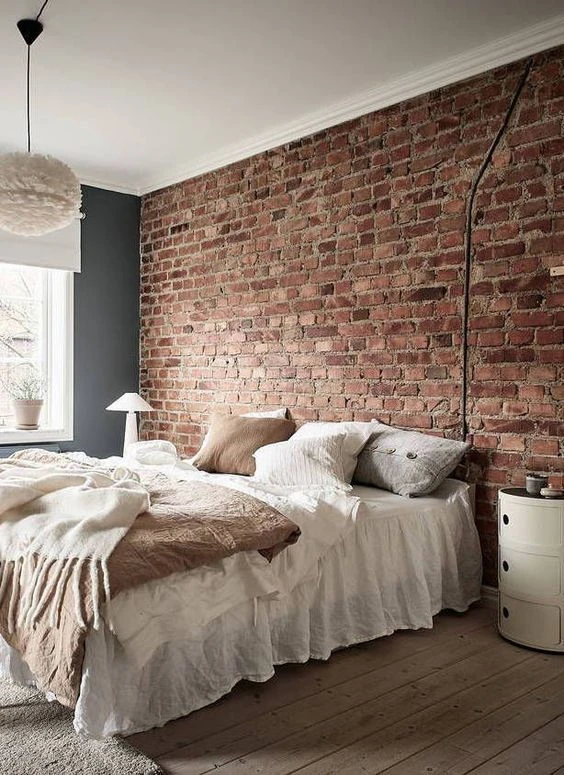 Los dormitorios con paredes de ladrillo a la vista son tendencia