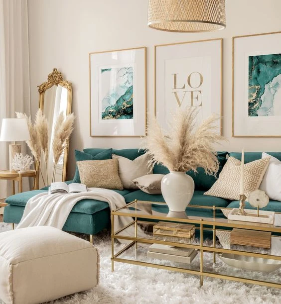 El dorado combina muy bien con los tonos neutros y pasteles, así como también con tonalidades estridentes, como el verde o el azul.