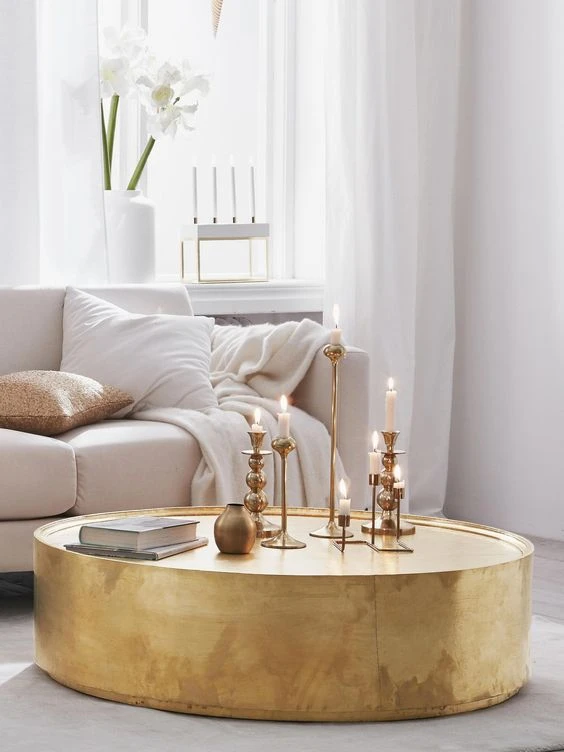 Algunos de los muebles y complementos que se pueden incorporar en tonos dorados son: un buen espejo en formato XL, un par de sillas o banquetas, una cómoda, una mesa combinada con vidrio, una lámpara, un florero, unas velas...