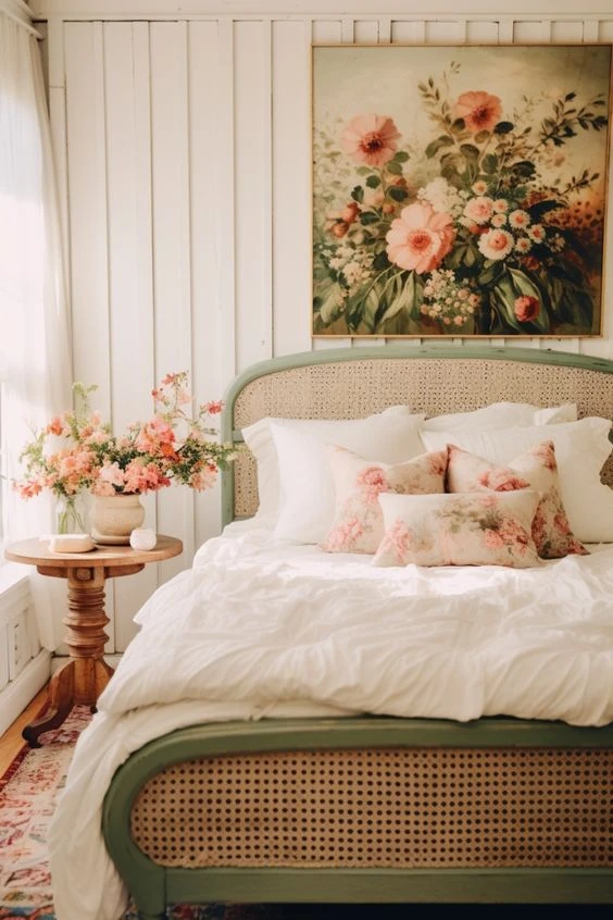 No se trata solo del blanco y sus variantes. Los colores crudos, pasteles y las tonalidades más suaves del azul y el verde, también entran en juego en el estilo cottagecore. Paredes, muebles y objetos decorativos abrazan estos colores y crean una atmósfera relajada y acogedora.